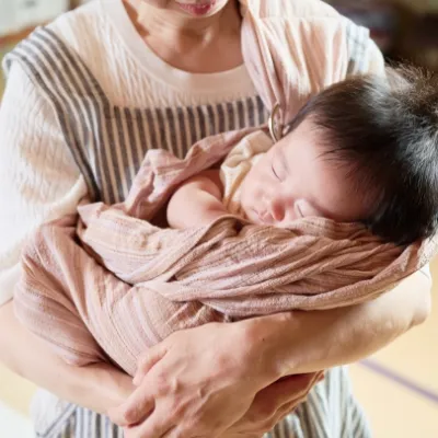 福山和み助産院ではまるまる抱っこやおひな巻きの提案をしています。