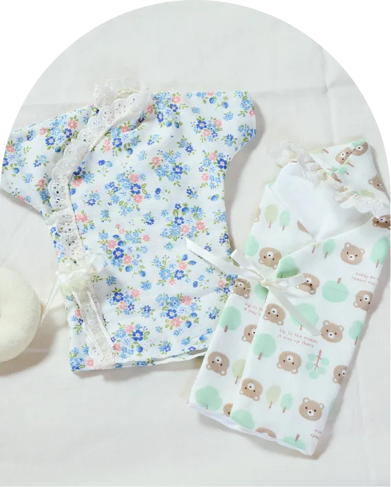 天使になった赤ちゃんの小さな服も作成しております。一緒に作成することもできますよ。
